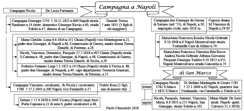 Qui sotto abbiamo riportato tre ceppi Campagna presenti a Napoli nell'Ottocento ricavati dai dati pubblicati on-line sul Portale degli Antenati e i due Campagna