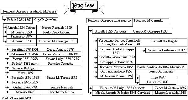 Sull'atto di morte del padre, Fedele Pugliese, deceduto nel 1865 in contrada Sant'Antonio Abate, leggiamo che aveva settant'anni, era anch'egli vaticale e figlio di Giuseppe e di